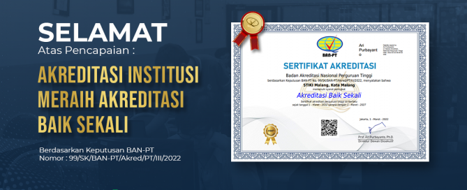 Malang: Sekolah Tinggi Informatika dan Komputer Indonesia (STIKI) berhasil meraih akreditasi institusi Baik Sekali sejak tanggal 1 Maret 2022-1 Maret 2027, dari Badan Akreditasi Nasional Perguruan Tinggi (BAN PT). Hal ini berdasarkan Keputusan dari BAN-PT pada sertifkat akreditasi dengan No: 99/SK/BAN-PT/Akred/PT/III/2022. Ketua STIKI, Dr. Eva Handriyantini, S.Kom., M.MT mengucapkan terima kasih kepada segenap sivitas [...]