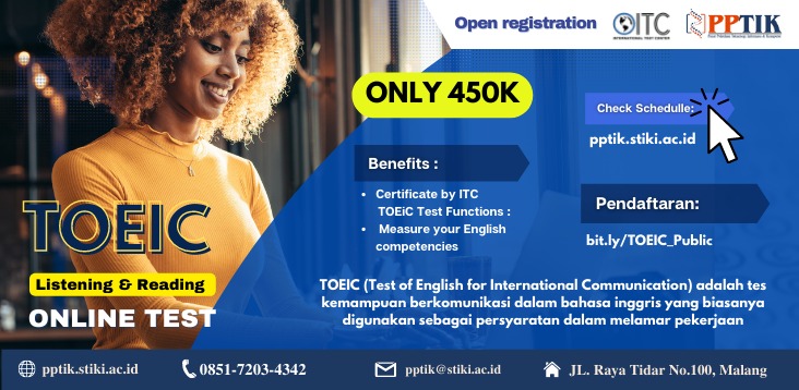 TOEIC (Test of English for International Communication) adalah tes kemampuan berkomunikasi dalam bahasa inggris yang biasanya digunakan sebagai persyaratan dalam melamar kerja.